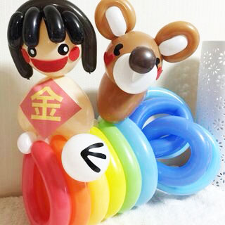 そして、丸やハートの風船など色々な風船を使って『金太郎&くまさん等』を作ります。